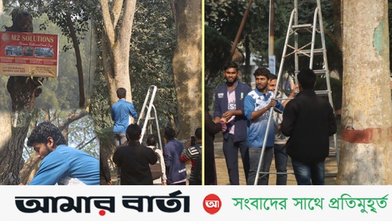 এসময় উপস্থিত ছিলেন সংগঠনের সভাপতি ইমতিয়াজ আহমেদ ইমন, সাধারণ সম্পাদক মিলন রানা মুরাদ, সাংগঠনিক সম্পাদক তনিমা খাতুন ও অন্যান্য সদস্যরা। তারা বিভিন্ন গাছ থেকে পেরেক, লোহার তাঁর, বিজ্ঞাপনের ব্যানার এবং ফেস্টুন অপসারণ করেন।
