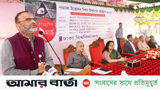 সোমবার (২ মার্চ) বিশ্ববিদ্যালয়ের কলাভবন সংলগ্ন বটতলা প্রাঙ্গণে ঐতিহাসিক ‘পতাকা উত্তোলন দিবস’ উদযাপন উপলক্ষ্যে আয়োজিত অনুষ্ঠানে প্রধান অতিথির বক্তব্যে তিনি একথা বলেন। এর আগে উপাচার্য অধ্যাপক ড. নিয়াজ আহমদ খান জাতীয় পতাকা উত্তোলনের মাধ্যমে অনুষ্ঠানের উদ্বোধন করেন।