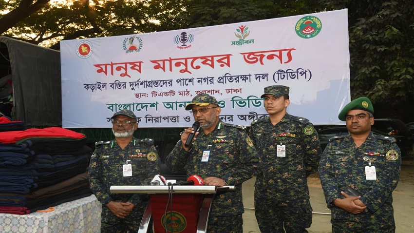 কড়াইল অগ্নিকাণ্ডে ক্ষতিগ্রস্তদের মাঝে আনসার–ভিডিপির শীতবস্ত্র বিতরণ