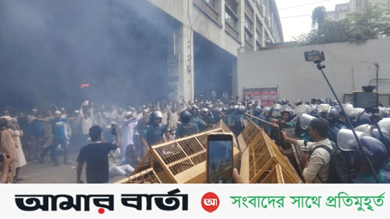 স্বতন্ত্র ইবতেদায়ী মাদরাসা জাতীয়করণের দাবি নিয়ে শিক্ষকেরা সচিবলায়ে ঢোকার চেষ্টা করলে জলকামান ও সাউন্ডগ্রেনেড নিক্ষেপ করে সরিয়ে দিয়েছে।