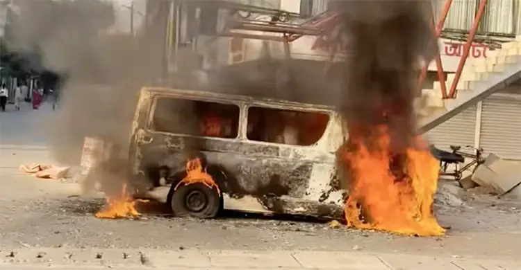 সাভারের আশুলিয়ায় যাত্রীবাহী বাসে আগুন, গুলিবর্ষণ