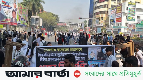 শিক্ষার্থীর মৃত্যুর ঘটনায় তেজগাঁও কলেজের শিক্ষার্থীদের ফার্মগেট অবরোধ
