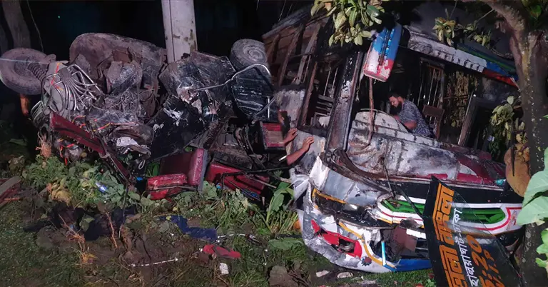 ইন্দিরাপাড় এলাকায় দাঁড়িয়ে থাকা বালুবাহী লরিকে ওভারটেক করতে গিয়ে ঘটে বিপত্তি। বিপরীত দিক থেকে দ্রুতগতিতে আসা ঢাকাগামী শ্যামলি বাংলা বাস মাহিন্দ্রাকে ধাক্কা দিলে ছিটকে গিয়ে সড়কের পাশে বিদ্যুতের খুঁটিতে ধাক্কা লেগে মাহিন্দ্রাটি দুমড়েমুচড়ে যায়। এতে ঘটনাস্থলেই এক নারীসহ পাঁচজন নিহত হন। এ ঘটনায় আহত আরও ছয়জনকে উদ্ধার করে হাসপাতালে নিলে সেখানে মারা যায় আরও তিনজন। দুর্ঘটনার পর বিক্ষুব্ধ জনতা আগুন দিয়ে পুড়িয়ে দেয় বাসটিকে।