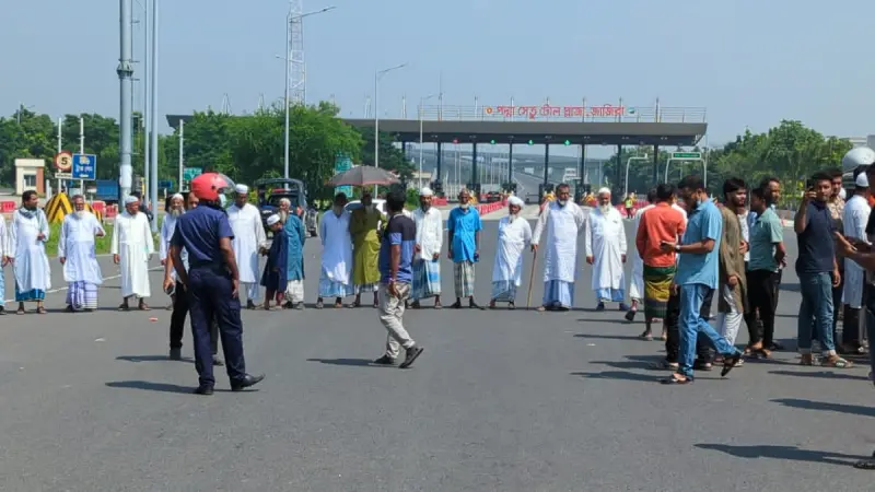 পদ্মা সেতুর জাজিরা প্রান্তের টোল প্লাজার সামনে সড়ক অবরোধ