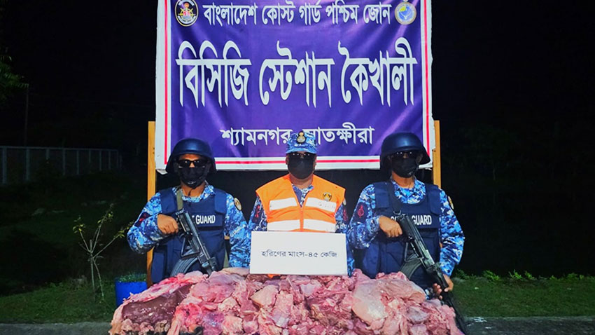সাতক্ষীরার শ্যামনগরে ৪৫ কেজি হরিণের মাংস ও ১২ টি পা জব্দ করেছে কোস্ট গার্ড।