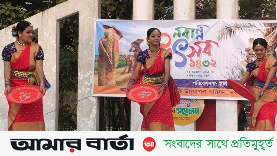 এদিকে নবান্নের প্রথম প্রহর থেকেই জেলা সামাজিক সংগঠনগুলো আয়োজন করেছে রঙিন নানা অনুষ্ঠান। শহরের মুক্তির মোড়ে শিশু-কিশোরদের নবান্নের জয়োগান ‘ধান কাটি কাটি ধান—নবান্ন এলো গান।’ মঞ্চে শিল্পীদের বর্ণিল পোশাকে নবান্নের আগমনী আহ্বানের লোকনৃত্য আরও প্রাণবন্ত করে তোলে। ফুটে ওঠে বাংলার শতশত বছরের লোকজ ঐতিহ্য।