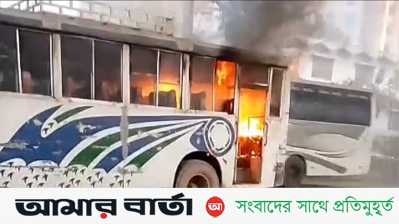 গাজীপুরের শ্রীপুরে যাত্রীবাহী বাসে আগুন
