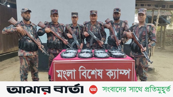 জয়পুরহাট ব্যাটালিয়ন-২০ বিজিবির পক্ষ থেকে বিকেল ৫টার দিকে পাঠানো প্রেস বিজ্ঞপ্তিতে জানানো হয়, গোপন সংবাদের ভিত্তিতে মংলা বিশেষ ক্যাম্পের টহল দল ভোরে অভিযানে যায়। এসময় তিন ব্যক্তিকে সীমান্তের পাশে দেখা মাত্রই তাদের দিকে অগ্রসর হলে তারা ব্যাগ ফেলে দৌড়ে পালিয়ে যায়।