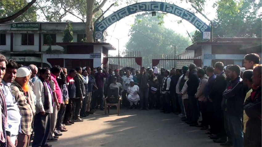 চার দাবিতে নাটোর চিনিকলের শ্রমিক-কর্মচারীদের বিক্ষোভ