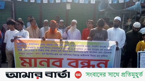 মানববন্ধনে বক্তারা অবিলম্বে রাস্তার কাজ পুনরায় শুরু ও সংঘবদ্ধ চাঁদাবাজ চক্রের বিরুদ্ধে কঠোর ব্যবস্থা নিতে প্রশাসনের জরুরি হস্তক্ষেপ কামনা করেন।