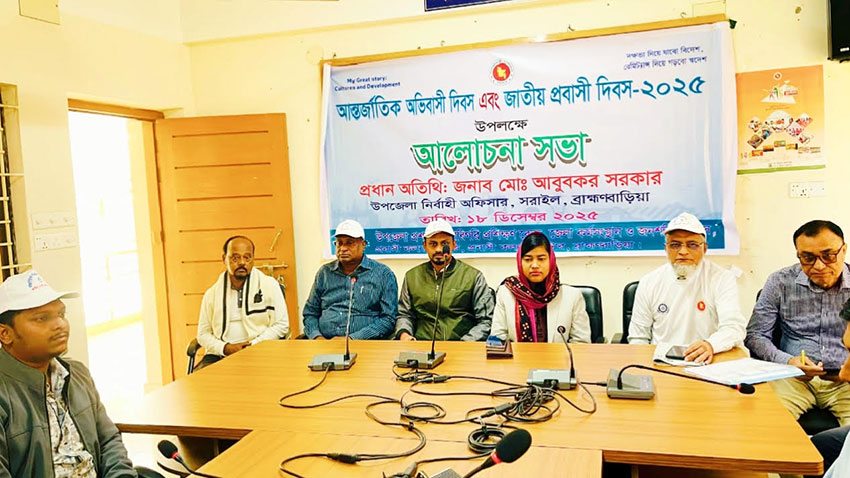 “দক্ষতা নিয়ে যাবো বিদেশ, রেমিট্যান্স দিয়ে গড়বো দেশ”—এই প্রতিপাদ্যকে সামনে রেখে ব্রাহ্মণবাড়িয়ার সরাইলে আন্তর্জাতিক অভিবাসী দিবস ও জাতীয় প্রবাসী দিবস পালিত হয়েছে।