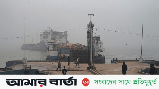 পদ্মা ও যমুনা নদীর অববাহিকায় ঘন কুয়াশা কেটে যাওয়ায় দেশের গুরুত্বপূর্ণ নৌরুট দৌলতদিয়া-পাটুরিয়ায় দীর্ঘ সাড়ে ৯ ঘণ্টা পর ফেরি চলাচল পুনরায় শুরু হয়েছে। শুক্রবার (২৬ ডিসেম্বর) সকাল সাড়ে ৯টার দিকে কুয়াশা কেটে গেলে এ নৌরুটে ফেরি চলাচল আবার স্বাভাবিক হয়।
