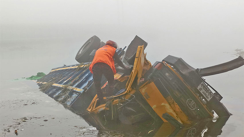 সেতুর রেলিং ভেঙে নদীতে ট্রাক, দুজনের মরদেহ উদ্ধার