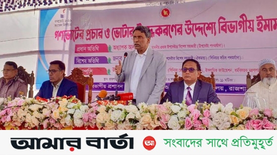 সোমবার (১২ জানুয়ারি) দুপুর ১২টার দিকে গণভোটের প্রচার ও ভোটার উদ্বুদ্ধকরণের লক্ষ্যে রাজশাহী হযরত শাহ মখদুম কেন্দ্রীয় ঈদগা মাঠে অনুষ্ঠিত রাজশাহী বিভাগীয় ইমাম সম্মেলনে প্রধান অতিথির বক্তব্যে তিনি এসব কথা বলেন।