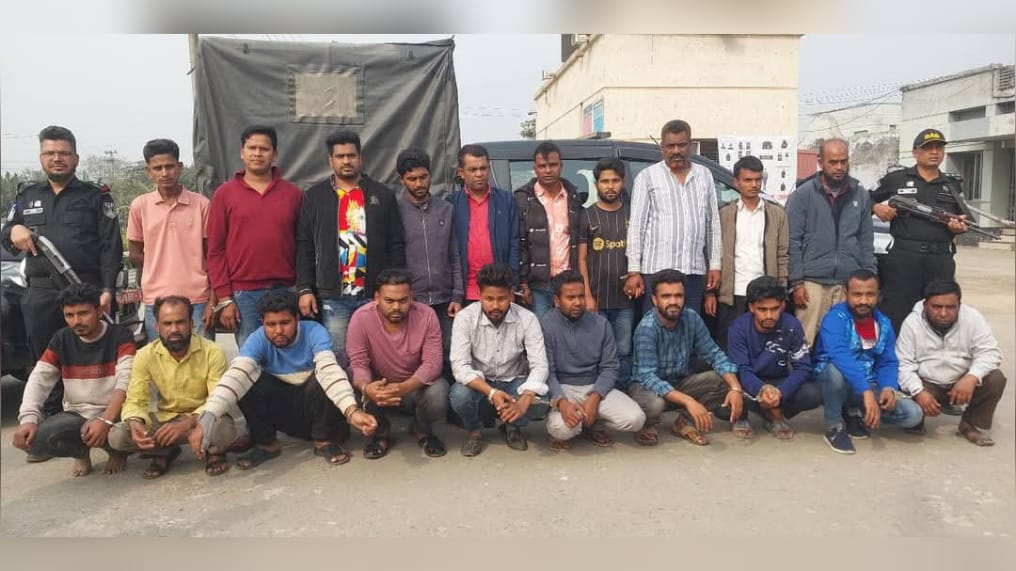 আটক ব্যক্তিরা হলেন- মো. মুস্তাফিজুর রহমান (৪৫), মো. মোতাহার হোসেন (২৭), মো. মিজানুর রহমান (৩০), মো. রনি (২৬), মো. বাদল মিয়া (৪৭), মো. হৃদয় মিয়া (২৫), মো. ফয়সাল (২২), আব্দুর রহমান (২৫), মো. হাফিজ হোসেন (৩০), মো. সাগর আহমেদ (৩৫), মো. শামিম মিয়া (৩১), মো. রাফসান (২৩), মো. মাসুদ রানা (৩৮), মো. রাসেল মিয়া (৩২), মো. শাফায়াতুল খালেক সাইফুল (৩৮), মো. অজুল মিয়া হৃদয় (২৫), মো. নাদিম মিয়া (২৮), মো. ইমন (২০), মো. সেলিম মজুমদার ও মো. মাহফুজ।