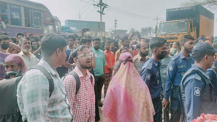 রূপগঞ্জে বকেয়া বেতনের দাবিতে ঢাকা-সিলেট মহাসড়ক অবরোধ, দীর্ঘ যানজট