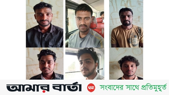 গ্রেপ্তার ব্যক্তিরা হলেন—ময়মনসিংহের গফরগাঁও উপজেলার ইমরান হাসান (২৪) এবং গাজীপুরের শ্রীপুর উপজেলার টুটুল হাসান (২০), নাজমুল (৩৫), কামাল হোসেন (৩২), রুহানুল ইসলাম রুহান (২৩) ও আকবর (২৯)।