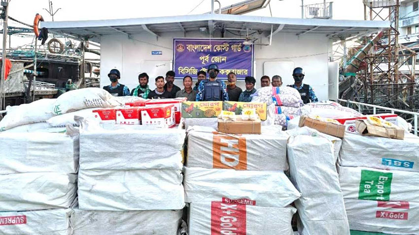 মিয়ানমার থেকে মাদকের বিনিময়ে বাংলাদেশি খাদ্য ও পণ্য সামগ্রী পাচারকালে ৯ চোরাকারবারিকে আটক করেছে কোস্ট গার্ড।