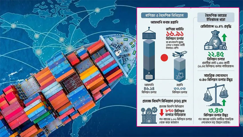 ৮ মাসে বাণিজ্য ঘাটতি ২ লাখ ৭ হাজার কোটি টাকারও বেশি
