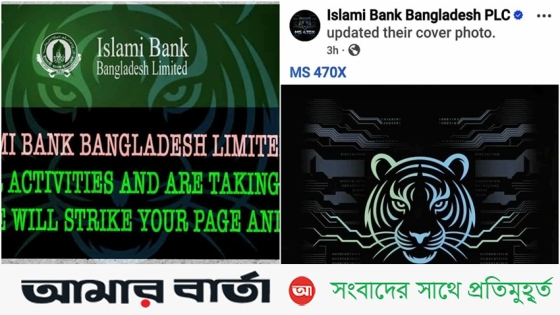 ইসলামী ব্যাংক বাংলাদেশ লিমিটেডের অফিসিয়াল ফেসবুক পেজ হ্যাক হয়েছে। একই সঙ্গে ফেসবুক পেজের প্রোফাইল ও কভার ছবি চেঞ্জ করে একটি হুমকিপূর্ণ বার্তা প্রকাশ করা হয়েছে।