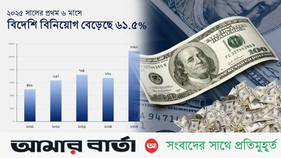 বৈশ্বিক অর্থনীতির অনিশ্চয়তা, মধ্যপ্রাচ্যের সংঘাত এবং বিনিয়োগে ধীরগতির প্রবণতার মধ্যেও বাংলাদেশে সরাসরি বিদেশি বিনিয়োগ (এফডিআই) বেড়েছে উল্লেখযোগ্য হারে। ২০২৫ সালের জানুয়ারি থেকে জুন পর্যন্ত সময়ে নিট এফডিআই প্রবাহ আগের বছরের একই সময়ের তুলনায় বেড়েছে ৬১ দশমিক ৫ শতাংশ।