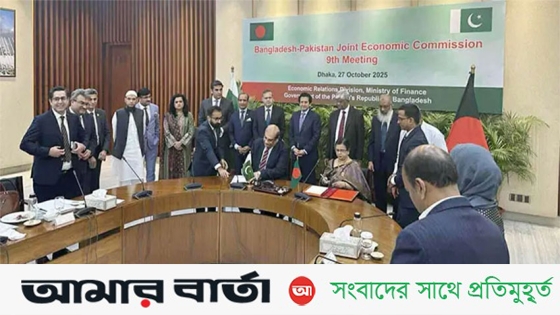 দীর্ঘ ২০ বছর পর বাংলাদেশ ও পাকিস্তানের মধ্যে নবম যৌথ অর্থনৈতিক কমিশনের (জেইসি) বৈঠক হয়েছে। দুই দেশের মধ্যে দ্বিপক্ষীয় বাণিজ্য ও অর্থনৈতিক সহযোগিতা বাড়ানো লক্ষ্যই এ আলোচনা। বৈঠকে পাকিস্তানি বাজারে বাংলাদেশি পণ্যের শুল্কমুক্ত ও কোটামুক্ত প্রবেশাধিকার চেয়েছে ঢাকা।