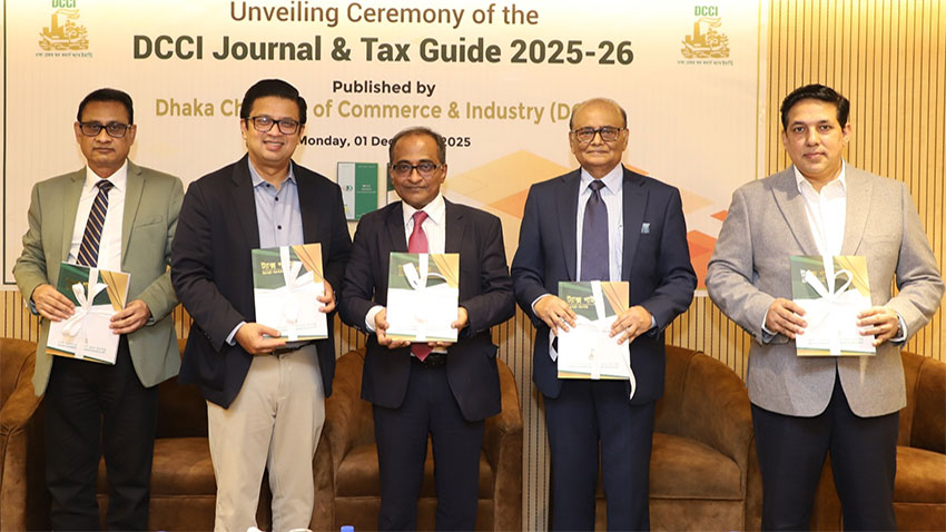 ঢাকা চেম্বার অব কমার্স অ্যান্ড ইন্ডাস্ট্রি (ডিসিসিআই) কর্তৃক প্রকাশিত ‘ডিসিসিআই জার্নাল অব বিজনেস অ্যান্ড ইকোনোমিক পলিসি’-এর দ্বিতীয় সংষ্করণ এবং ‘ট্যাক্স গাইড ২০২৫-২৬’-এর মোড়ক উন্মোচনের অনুষ্ঠান গত সোমবার (০১ ডিসেম্বর) ডিসিসিআই অডিটোরিয়ামে অনুষ্ঠিত হয়।
