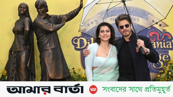 প্রায় ৩০ বছর আগে মুক্তি পাওয়া বলিউডের সুপারহিট সিনেমা ‘দিলওয়ালে দুলহানিয়া লে যায়েঙ্গে’–এর স্মরণীয় মুহূর্ত উদযাপন করলেন শাহরুখ খান এবং কাজল। লন্ডনের লিসেস্টার স্কয়ারে সিনেমার আইকনিক দৃশ্যের ভঙ্গিমায় তৈরি ব্রোঞ্জের ভাস্কর্য উন্মোচন করেন এই দুই তারকা; আর এখনও যে সিনেমাটি মানুষের হৃদয়ে জীবন্ত, তা নিয়ে উচ্ছ্বাস প্রকাশ করেন এই জনপ্রিয় তারকা জুটি। অনুষ্ঠানে উপস্থিত ছিলেন কাজলের দুই সন্তান, ছেলে যুগ ও মেয়ে নিসাও।