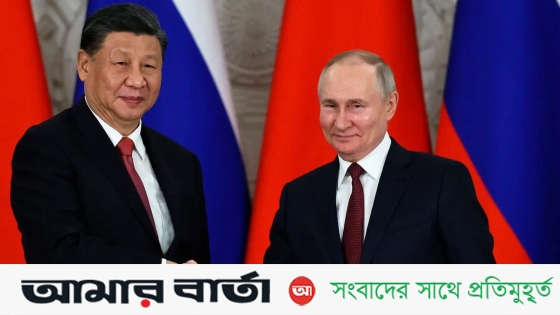 রুশ প্রেসিডেন্টের পাশে দাঁড়িয়ে থাকা শি জিনপিং বলেছেন, তার সরকার শান্তি ও আলোচনার ওপর জোর দিচ্ছে এবং চীন ‘ইতিহাসের সঠিক দিকে আছে।’