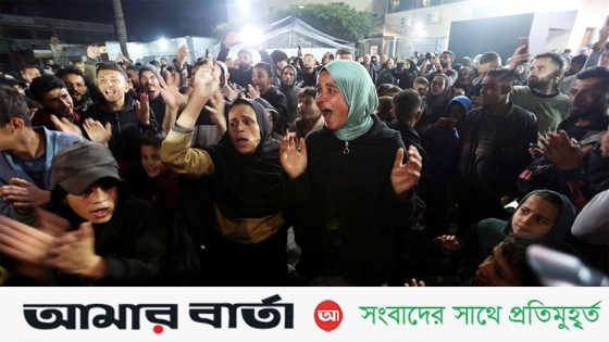 ইসরায়েল ও ফিলিস্তিনের গাজা উপত্যকা নিয়ন্ত্রণকারী রাজনৈতিক গোষ্ঠী হামাসের যুদ্ধবিরতি প্রস্তাব সংক্রান্ত চুক্তিতে স্বাক্ষরের খবরে উচ্ছ্বাসের জোয়ার বইছে গাজায় বসবাসরত ফিলিস্তিনিদের মধ্যে। কেউ খুশিতে কাঁদছেন-হাততালি দিচ্ছেন, কেউ বাঁশি বাজাচ্ছেন, কেউ গান গাইছেন-নাচানাচি করছেন এবং চিৎকার করে বলছেন ‘আল্লাহু আকবর’।