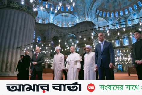 তুরস্ক সফরের তৃতীয় দিনে ঐতিহাসিক ইস্তাম্বুলে পা রেখে বিখ্যাত ‘সুলতান আহমেদ মসজিদ’-যা বিশ্বব্যাপী ‘নীল মসজিদ’ নামে পরিচিত-পরিদর্শন করেছেন পোপ লিও চতুর্দশ। আধ্যাত্মিক আবহে ঘেরা এই প্রাচীন স্থাপনাটি ঘুরে দেখে গভীর মনোযোগে সময় কাটান ক্যাথলিক আধ্যাত্মিক নেতা।