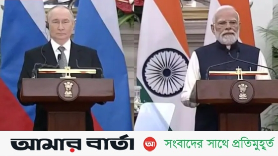 ‘সন্ত্রাসের বিরুদ্ধে ভারতের পাশে দাঁড়িয়ে লড়াই করছে রাশিয়া।’ রুশ প্রেসিডেন্ট ভ্লাদিমির পুতিনকে পাশে নিয়ে এমনটাই বললেন ভারতের প্রধানমন্ত্রী নরেন্দ্র মোদি। শুক্রবার (৫ ডিসেম্বর) সকালে নয়াদিল্লির হায়দরাবাদ হাউসে যৌথ সাংবাদিক সম্মেলনে অংশ নেন মোদি ও পুতিন।