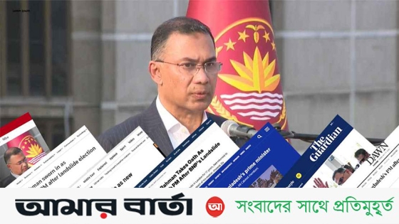 গণ-অভ্যুত্থানে আওয়ামী লীগ সরকারের পতনের দেড় বছর পর অনুষ্ঠিত ত্রয়োদশ জাতীয় সংসদ নির্বাচনে নিরঙ্কুশ সংখ্যাগরিষ্ঠতা পেয়ে আজ মঙ্গলবার (১৭ ফেব্রুয়ারি) সরকার গঠন করল বিএনপি। সরকারের প্রধানমন্ত্রী হয়েছেন দলটির চেয়ারম্যান তারেক রহমান। জাতীয় সংসদ ভবনের দক্ষিণ প্লাজায় তারেক রহমান ও তার সরকারের ২৫ জন মন্ত্রী এবং ২৪ জন প্রতিমন্ত্রী শপথ নিয়েছেন। এনিয়ে গুরুত্ব সহকারে খবর প্রকাশ করেছে আন্তর্জাতিক সংবাদমাধ্যমগুলো।