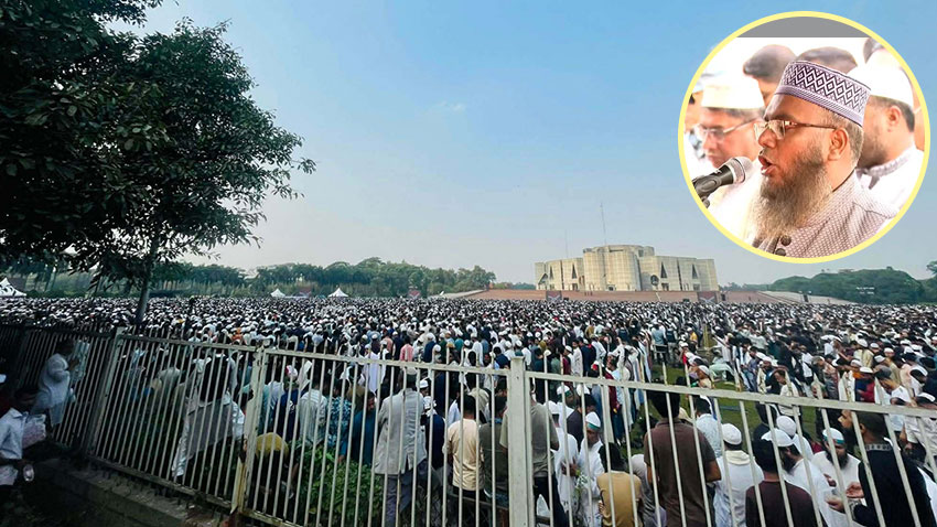 শহীদ হাদির জানাজায় অংশ নিতে সংসদ ভবনের দক্ষিণ প্লাজায় লাখো মানুষের ঢল