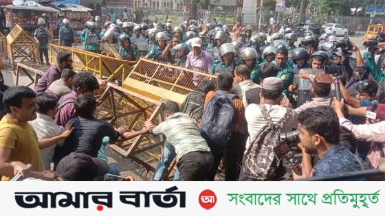 রোববার (২৬ অক্টোবর) দুপুর ১২টা ৪০ মিনিটের দিকে ঢাকা বিশ্ববিদ্যালয়ের রাজু ভাস্কর্যের পাদদেশ থেকে পদযাত্রা শুরু করেন তারা। পরে সেটি শাহবাগ থানার সামনে পৌঁছালে সড়কে ব্যারিকেড দিয়ে আটকে দেওয়া হয়।