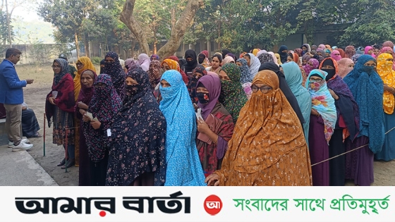 উৎসবমুখর পরিবেশে চলছে ভোটগ্রহণ, ভোটারদের দীর্ঘ লাইন