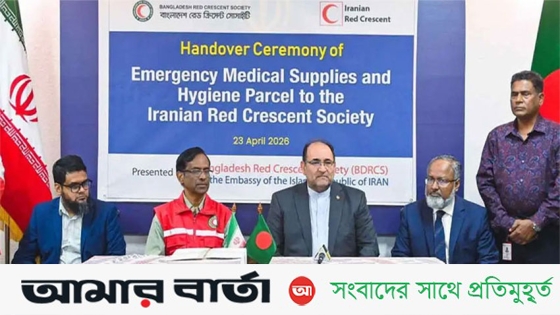মধ্যপ্রাচ্যে চলমান সংকটের প্রেক্ষাপটে ইরানের জনগণের প্রতি সংহতি প্রকাশ ও মানবিক সহায়তার অংশ হিসেবে বৃহস্পতিবার (২৩ এপ্রিল) সকালে বাংলাদেশ রেড ক্রিসেন্ট সোসাইটির মহাসচিব ড. কবির এম. আশরাফ আলম ঢাকায় ইরানের রাষ্ট্রদূত জলিল রাহিমি জাহানাবাদির কাছে জরুরি ওষুধ সামগ্রী হস্তান্তর করেন।