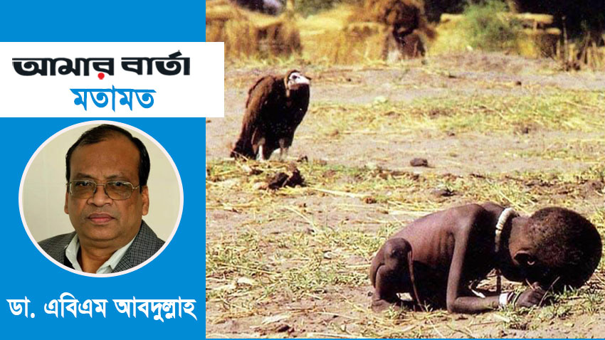 খাদ্যাভাবে কত মানুষ মারা যায় তার সঠিক হিসাব করা দুষ্কর। ২০২০ সালে ওয়ার্ল্ড ফুড প্রোগ্রামের এক হিসাব অনুযায়ী, বছরে প্রায় ৯০ লাখ মানুষ না খেয়ে মারা যান। অন্য আরেক তথ্যে জানা যায়, প্রতিদিন বিশ্বে গড়ে ৮ হাজার ৬৪০ জন মারা যায় খাদ্যাভাবে, যার বেশিরভাগই শিশু। এখন স্বাভাবিকভাবেই প্রশ্ন জাগে, এভাবে খাবার অপচয় রোধে আমাদের করণীয় কী? আমরা কি এমনটাই চলতে দেব? টাকা থাকলেই কি অতিরিক্ত খাওয়া আর খাবার ফেলে দেওয়ার অধিকার জন্মায়? সমাজবদ্ধ জীব হিসাবে আমাদের দায়িত্ব আছে সমাজের খাদ্য নিরাপত্তা নিশ্চিত করার। নিজেদের সচেতন হতে হবে, আত্মীয়স্বজন-প্রতিবেশীদের সচেতন করতে হবে। ছোটদের শেখাতে হবে-খাবার শেষ করাই শুধু নয়, প্রয়োজনের অতিরিক্ত খাবার পাতে না নেওয়াও একটা দায়িত্ব। বিভিন্ন অনুষ্ঠানে বাড়াবাড়ির যে সংস্কৃতি গড়ে উঠেছে, তা পরিহার করা উচিত। আমাদের সবার প্রতিজ্ঞা করতে হবে, জীবনে যতদিন বেঁচে আছি, একটা দানাও অপচয় করব না, যতটুকু পারি ক্ষুধার্তকে খাওয়াব। যদি খাওয়াতে না পারি, অন্তত নিজের খাবারের ব্যাপারে মিতব্যয়ী হব। একইসঙ্গে খাদ্য উৎপাদন, সংরক্ষণ আর বণ্টনে যেন অপচয় না হয়, সেদিকে লক্ষ রাখতে হবে। চাষির ন্যায্যমূল্যপ্রাপ্তি আর দরিদ্রদের সুলভে পর্যাপ্ত খাবার প্রাপ্তি-দুই-ই নিশ্চিত করতে হবে। আর অপচয় রোধে উদ্যোগ না নিয়ে যদি তামাশাই দেখি, তাহলে অভুক্ত মানুষের কষ্টের দায়ভার আমাদের কাঁধেই এসে পড়বে। পুলিতজার জয়ী আলোকচিত্রীর মতো আমরাও কি তখন আত্মহত্যা করব? আল্লাহ আমাদের বোঝার তৌফিক দান করুন, যাতে আমরা খাদ্য অপচয় না করে পরিমিত ভোগে সন্তুষ্টচিত্তে তার শুকরিয়া আদায় করি।