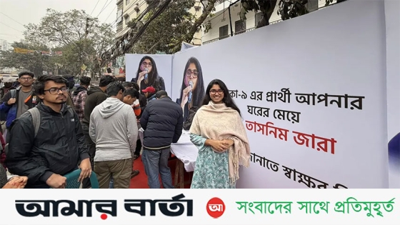 জাতীয় নাগরিক পার্টি (এনসিপি) থেকে পদত্যাগ করে ঢাকা-৯ (খিলগাঁও, সবুজবাগ ও মুগদা) আসনে স্বতন্ত্র নির্বাচনের ঘোষণা দিয়েছেন ডা. তাসনিম জারা। স্বতন্ত্রে নির্বাচন করতে একদিনে তাঁর প্রয়োজন ওই আসনের সাড়ে ৪ হাজারেরও বেশি ভোটারের স্বাক্ষর।