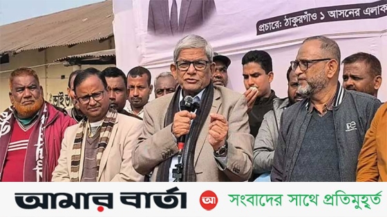 মির্জা ফখরুল বলেন, ঠাকুরগাঁও আমার জন্মস্থান। আমার বাবা, আমি ও আমার ছোট ভাই পৌরসভার চেয়ারম্যান ছিলাম। আওয়ামী লীগের আমলে ছোট ভাই চেয়ারম্যান থাকা সত্বেও তাকে কোনো বরাদ্দ দেওয়া হয় নাই। আমরা কাজ করতে পারি নাই। সরকার চলে যাওয়ায় পর আমরা শহরের রাস্তার কাজগুলো নিয়ে এসেছি। আপনারা অতীতে ভোট দিয়েছেন এবারও দেবেন। আমরা রাজনীতি করে ব্যবসা করি না। বাপের জমিজমা বিক্রি করে রাজনীতি করি। বাপের জমিজমা যা ছিল অর্ধেক শেষ। এটাই আমার শেষ নির্বাচন, আপনারা আমাকে সুযোগ করে দেবেন।