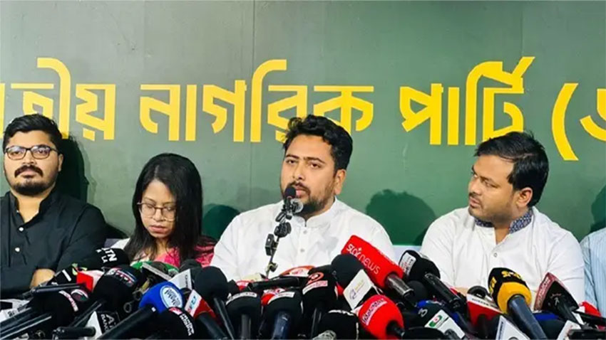 সংবাদ সম্মেলনে কথা বলেন এনসিপির আহ্বায়ক মো. নাহিদ ইসলাম