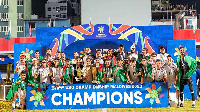 বাংলাদেশের যুব ফুটবল দল টানা দ্বিতীয়বারের মতো অনূর্ধ্ব-২০ সাফ চ্যাম্পিয়নশিপের শিরোপা ঘরে তুলেছে। ভারতকে টাইব্রেকারে হারিয়ে এই সাফল্য অর্জন করার পর শনিবার (৪ এপ্রিল) রাতে দেশে ফিরলে তাদের জন্য অপেক্ষা করছিল উষ্ণ সংবর্ধনা।