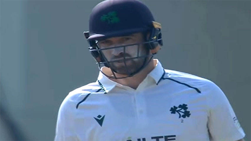 দলীয় রানের খাতা না খুলতেই আয়ারল্যান্ড তাদের প্রথম উইকেট হারায়। তবে আউটের সময় অদ্ভুত এক দৃশ্য দেখা গেল।