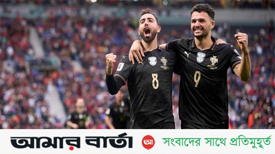রোববার (১৬ নভেম্বর) রাতে রোনালদো না থাকলেও তার অভাব মোটেও বুঝতে দেয়নি দলের বাকিরা। রাতে দারুণ এই জয়ে দুর্দান্ত হ্যাটট্রিকে আন্তর্জাতিক ফুটবলে দীর্ঘদিনের গোল খরা কাটিয়ে উঠেছেন ব্রুনো ফার্নান্দেজ। হ্যাটট্রিক করেছেন জোয়াও নেভেসও।