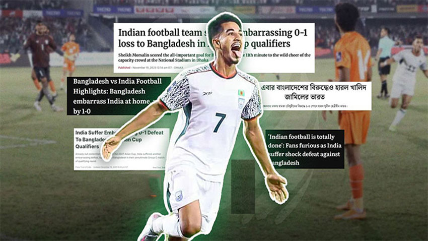 ২২ বছর পর ভারতের বিপক্ষে জয় পেয়েছে বাংলাদেশ ফুটবল দল। গতকাল ঢাকা জাতীয় স্টেডিয়ামে মোরসালিনের একমাত্র গোলে তারা ১-০ ব্যবধানে জয় তুলে নেয়। স্বাভাবিকভাবেই এমন সাফল্যে স্বাগতিক ফুটবলার থেকে সমর্থকদের উচ্ছ্বাস যেন বাঁধ মানছিল না। অন্যদিকে, রাজ্যের হতাশা ছিল ভারতীয় ডাগআউটে। অনেকটা মাথা নিচু করেই মাঠ ছাড়ে খালিদ জামিলের শিষ্যরা। দেশটির গণমাধ্যমেও এমন হারকে ‘লজ্জার’ হিসেবে আখ্যা দেওয়া হয়েছে।
