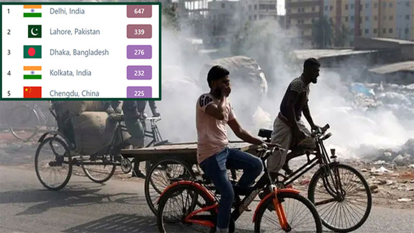 বায়ুদূষণে বিশ্বের শহরগুলোর তালিকায় ৬৪৭ স্কোর নিয়ে শীর্ষে রয়েছে ভারতের দিল্লি, শহরটির বাতাসের মান ‘বিপজ্জনক’। এদিকে ২৭৬ স্কোর নিয়ে তৃতীয় অবস্থানে রয়েছে বাংলাদেশের রাজধানী ঢাকা। যার বাতাসের মান ‘খুব অস্বাস্থ্যকর’ বলে বিবেচিত হয়।